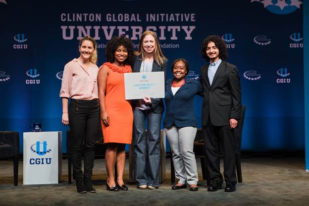 The CGI U Conference also hosts a Codeathon, an event focused on designing digital prototypes that address a particular issue that begins a day prior to the conference. The focus for the 2017 Codeathon was improving energy efficiency in large metropolitan cities. My team prototyped an app called Wiser, an app aimed towards learning users’ shopping habits in order to provide customized shopping lists to minimize wasted food. Our team was able to win the subsequent idea-pitching competition and briefly meet Clinton Foundation Vice-Chair, Chelsea Clinton.