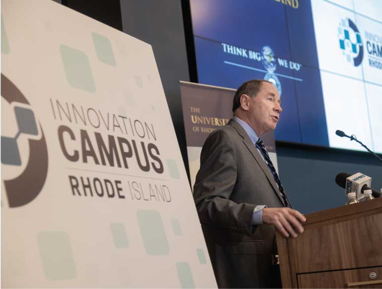 KINGSTON, R.I. — December 18, 2018 — Gov. Gina Raimondo today joined University of Rhode Island President David M. Dooley to announce the first round of Rhode Island Innovation Campus projects, which will catalyze academic research into new commercial products and businesses. The three campuses are expected to create hundreds of jobs in rapidly growing advanced industries, including cybersecurity, data analytics and agricultural technology in Rhode Island.
