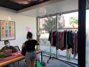The pop-up shop area in the J. Orin Edson Entrepreneurship + Innovation Institute collaboration space at Fusion on First is abuzz with activity as the students in Professor Danielle Testa’s Fashion Retail Management class enjoy the culmination of their fashion retail management immersion project, a for credit class assignment. The Herberger Institute for Design and the Arts at Arizona State University houses their Fashion Design and Popular Music programs in Fusion on First, where students can benefit from Edson E + I resources and EOSS support.
