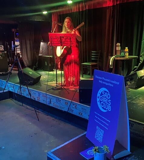 The idea came almost by accident. I was playing a show with a friend and fellow sad girl, and we started joking around about how dramatic our songs were and started calling it Sad Girls Club. We almost laughed it off, but then I thought, “Sad Girls Club…that could really be something.” I threw together a logo and a brand guide, worked out a business model, put together a pitch deck, and we were off to the races. Sad Girls Club helps music fans discover Phoenix’s saddest lady songwriters while leveraging the power of community to create more opportunities for women in music and build a more diverse and interesting local music scene. Essentially, by programming similar artists together, each artist can bring their fans and communities out to support the entire show, and everyone’s fan bases will grow more quickly. Our brand promise to music fans is that they will get quality sad girl music at all of our shows. As we gain recognition, people will be willing to spend their precious time out at our events, as we take the risk out of wasting time on artists the listener doesn’t like when trying to find new music. Just over six months since our founding, we are putting on about two shows a month at local venues and slowly but surely growing our social media presence.