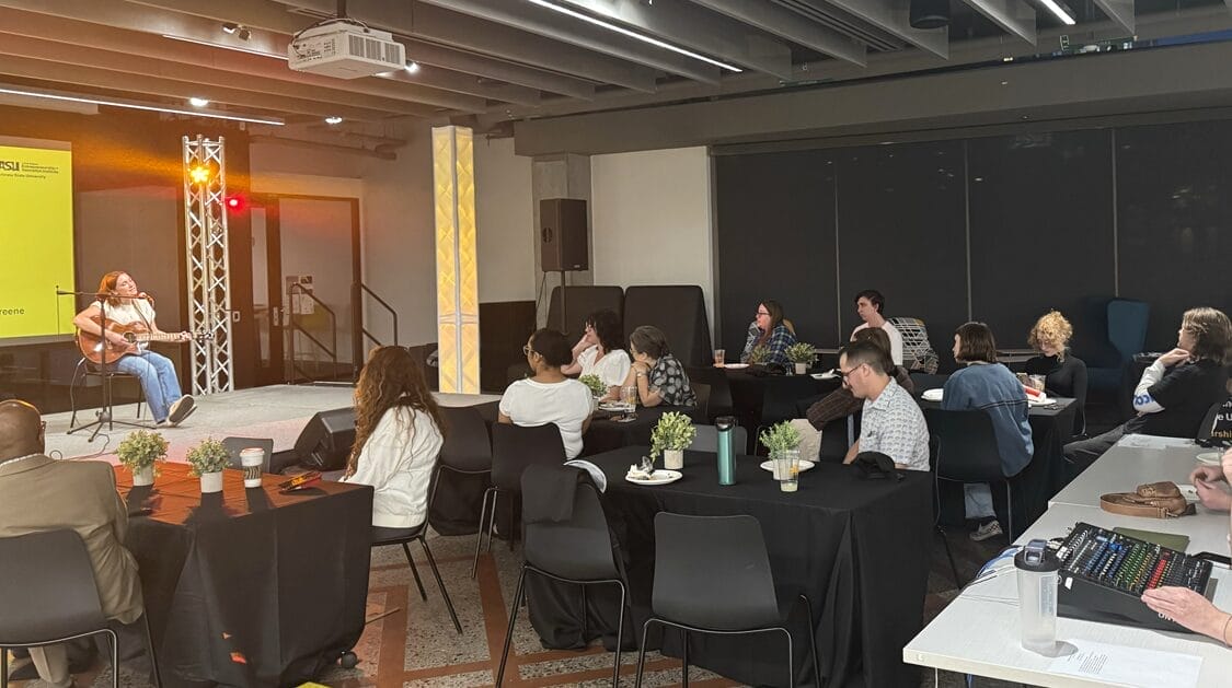 The Creative Spark pilot had a cohort of 30 students, 12 of whom submitted a project proposal, of which seven were funded. The funding allowed the students to meet a variety of project goals, such as breaking even on the Kax Stage at the Herberger Theater for a performance and releasing professional-quality recordings. Funded projects include Frandsen Agency, a PR and marketing agency for indie musicians founded by Logan Frandsen; Pick Up the Pieces, an EP released by Cassidy Peterson; The Weight of an Existence, an interactive soundscape experience by Rohith Chandrashaker; and Sunday Dinner, a semi-scripted singer/songwriter showcase by Zoe Nichols. There are many more projects that are still in preparation for release. Your next favorite song might be from a Creative Spark-funded project!